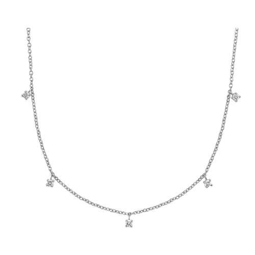 השרשרת עשויה כסף 925 ומשובצת חמש אבני מואסנייט איכותיות בגודל 3.5 מ״מ כל אחת.