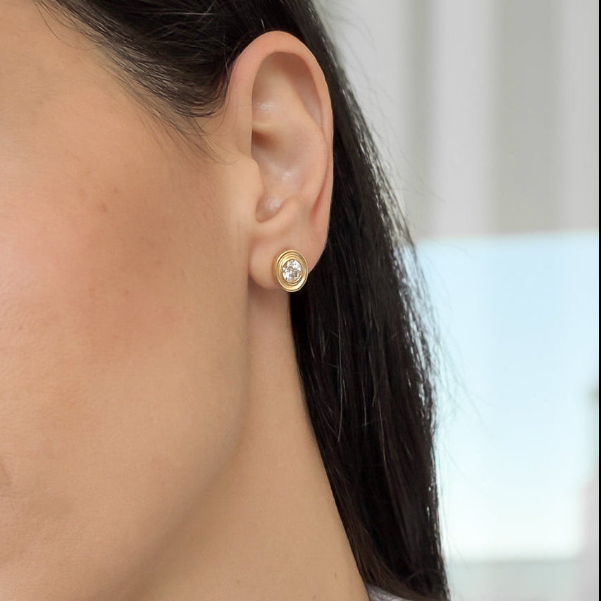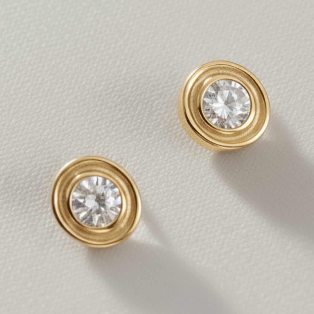 העגילים עשויים כסף 925 בציפוי זהב איכותי בעובי 2 מיקרון, משובצים אבן מואסנייט איכותית בגודל 5 מ״מ