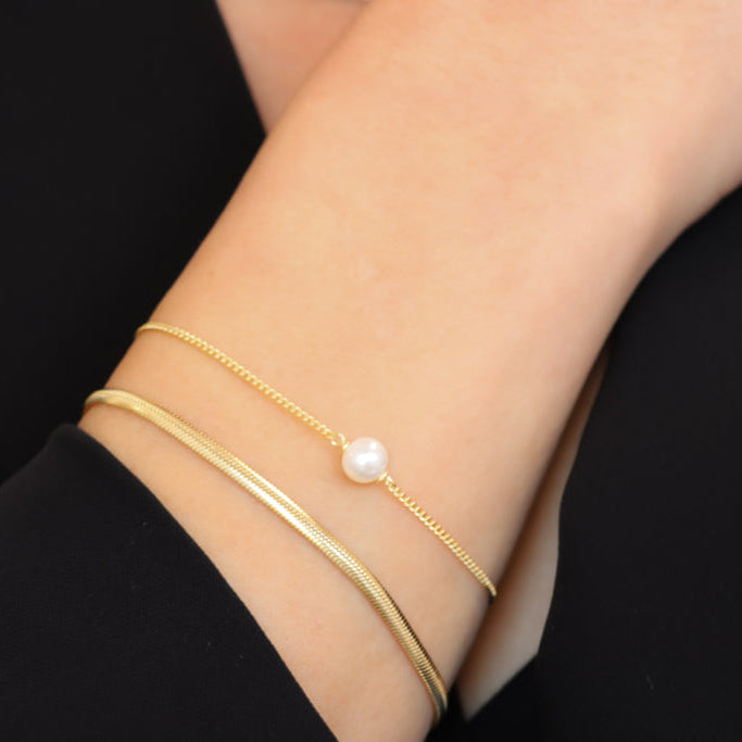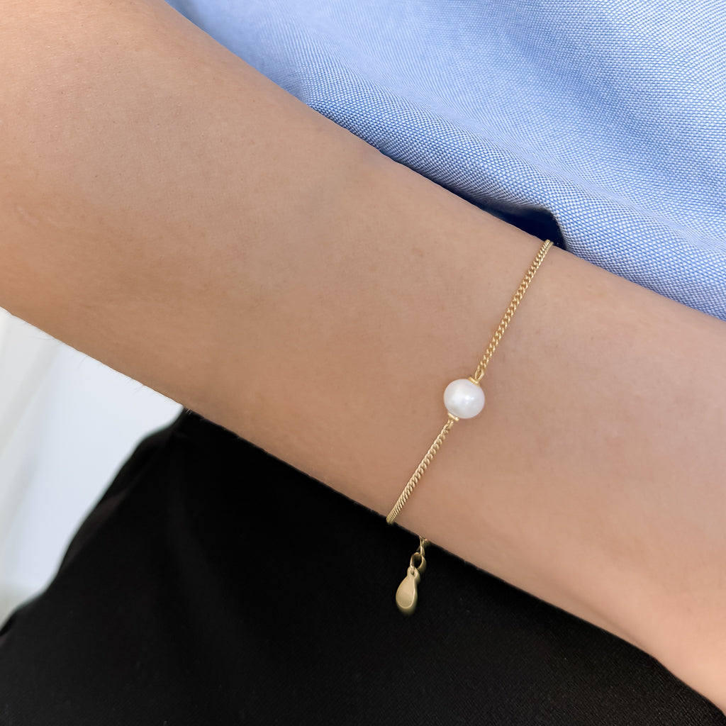 הצמיד עשוי כסף 925 בציפוי זהב איכותי בעובי 2 מיקרון (פי 4 מציפוי סטנדרטי), ופנינה אמיתית בגודל 6 מ״מ