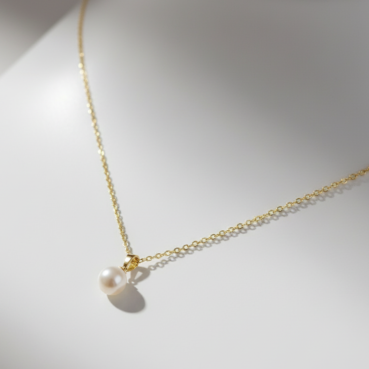 השרשרת עשויה כסף 925 בציפוי זהב איכותי בעובי 2 מיקרון, וכוללת תליון פנינה אמיתית בגודל 8 מ״מ
