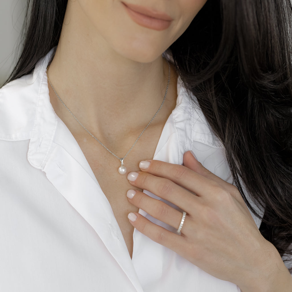 השרשרת עשויה כסף 925 וכוללת תליון פנינה אמיתית בגודל 8 מ״מ